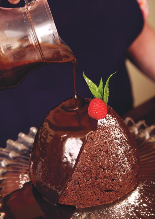 Steamed chocolate pudding with chocolate and Bailey's sauce