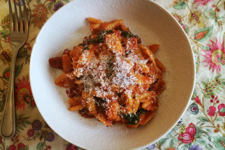 I enjoyed this buttery, tomatoey pasta with some finely grated Parmesan and a glass of red. The perfect wind-down dinner!