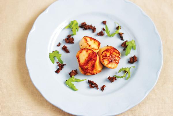 This is an impressive restaurant-style starter. The key to perfect scallops is to buy them very fresh, use a hot pan and cook them for just two to three minutes on each side.