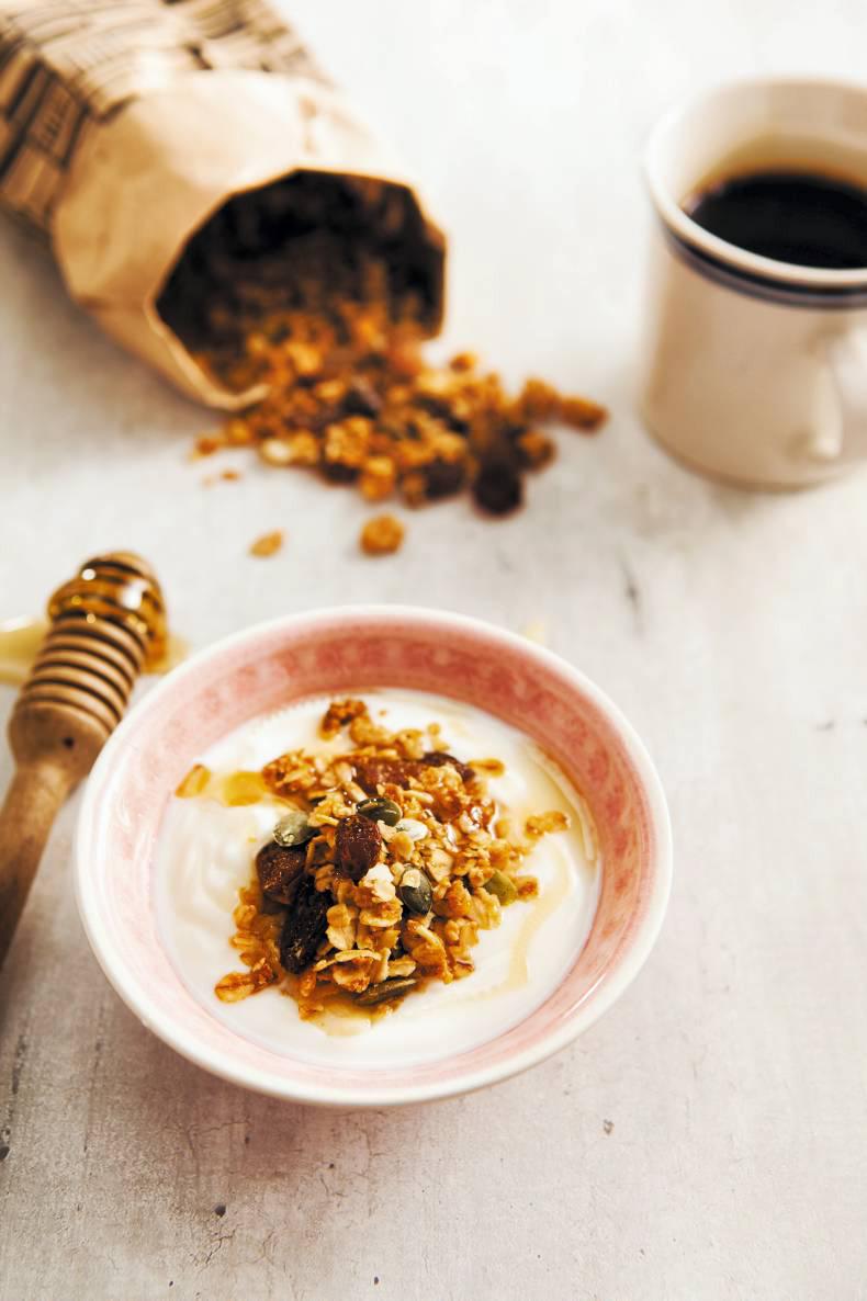 5. Spread on two baking trays or a large roasting dish and place in the centre of the preheated oven. Bake for 30 to 40 minutes until golden brown. Stir every 10 minutes to ensure that the granola browns evenly.