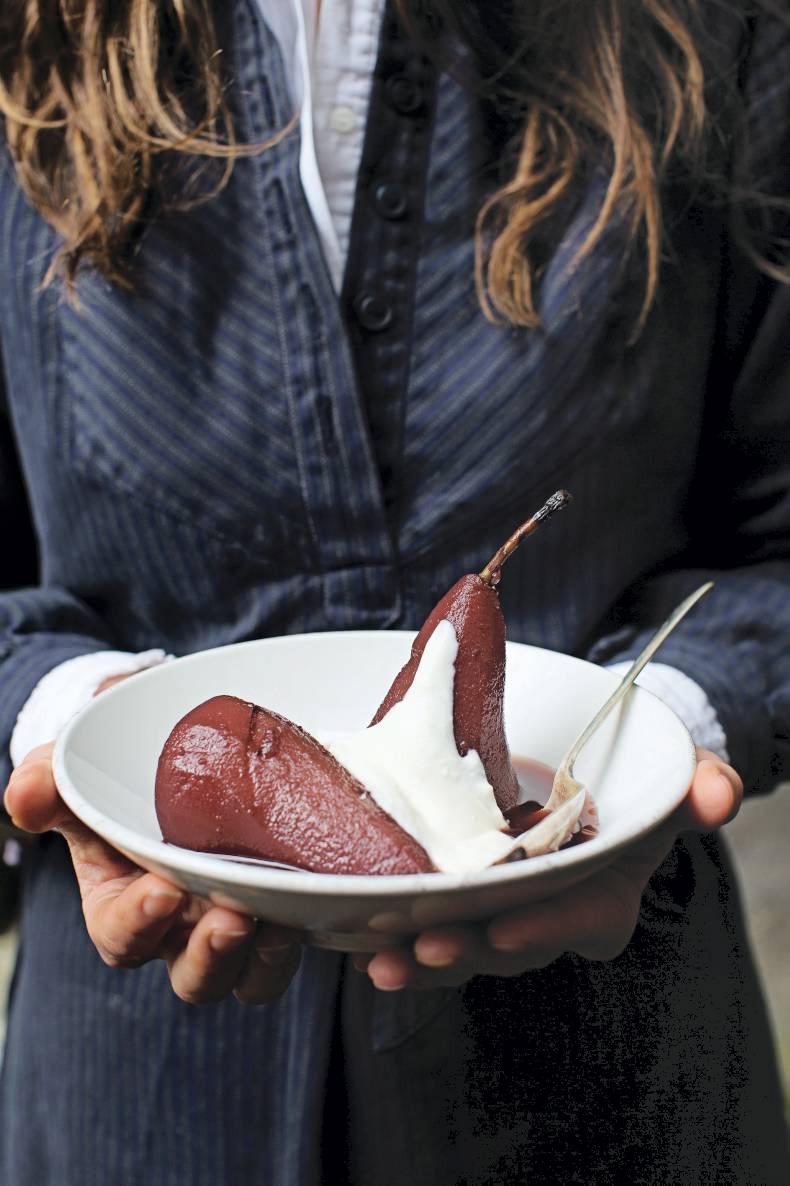 3 Chill in the fridge for a few days or serve the pears straight away on individual plates, drizzled with the licky-sticky poaching liquid. (You could cut large pears in half to serve eight.) A dollop of coconut milk yoghurt takes the dish up an octave.