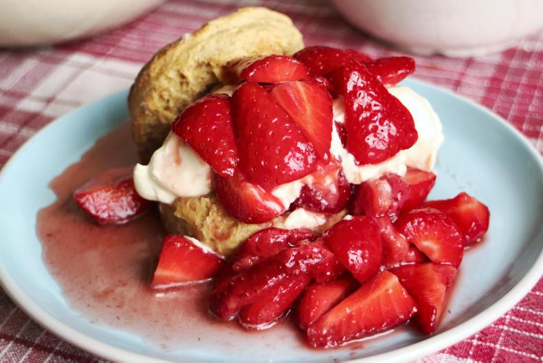 Sometimes you want strawberry shortcake with a sponge cake and, sometimes, you want it with a sweet scone. I grew up on this type of shortcake, but have developed my own sweet scone recipe using brown sugar and vanilla.