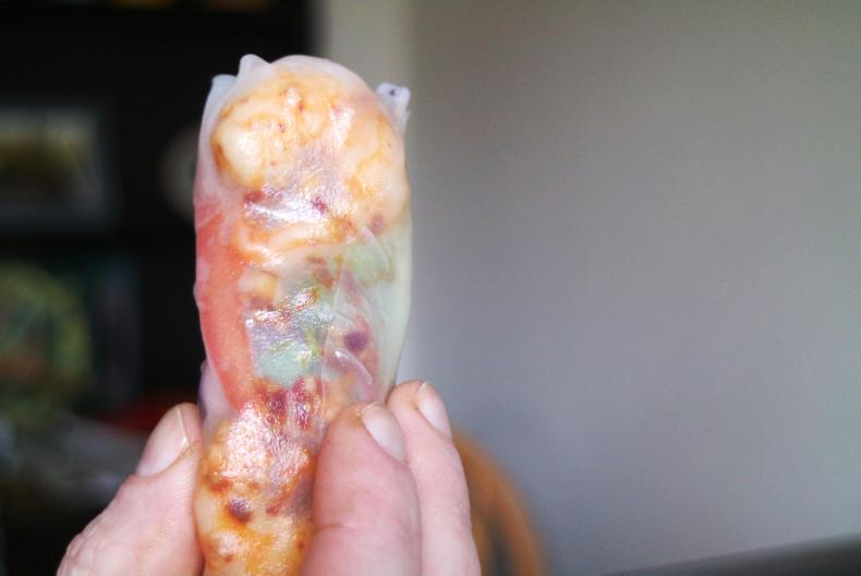 If you feel like these rolls look too complicated to try at home, please be assured that this is not the case. When the rice paper is softened in hot water, it gets sticky very quickly. Even if you're not a professional roll-wrapper, you'll be able to stick it all together to make a very tasty meal.