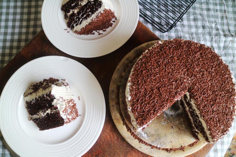 For icing, I love to make an Italian meringue buttercream. I think the buttery, creamy frosting works really well with the dense chocolate cake. It might take a few attempts to get this recipe right, but once you do, you won't look back - the flavour of the light and airy buttercream is superior to thicker icing sugar-based frostings and it's always the perfect texture for spreading onto the cake.