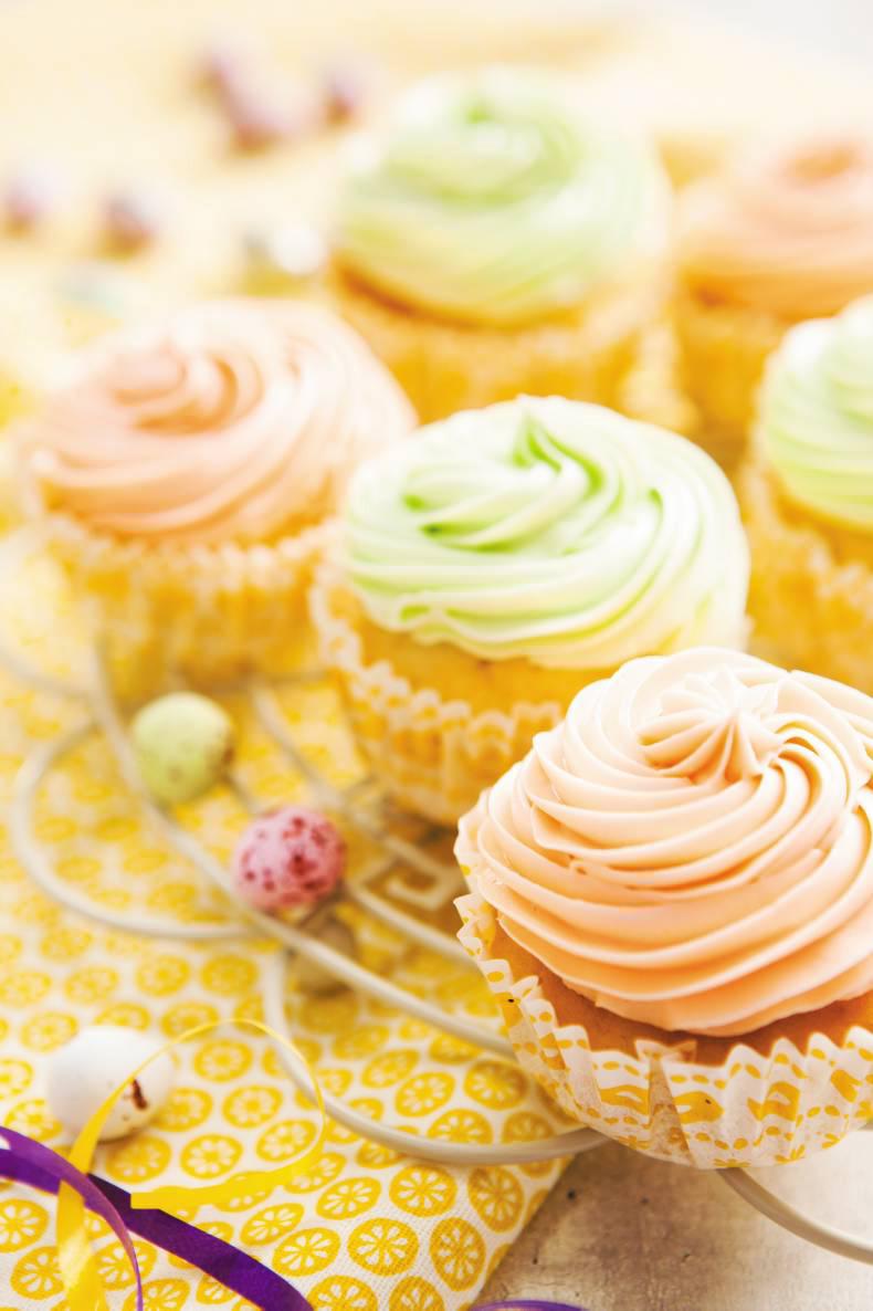 3 Fill a piping bag with pale pink buttercream and pipe on to half of the cupcakes using a wide-star nozzle.