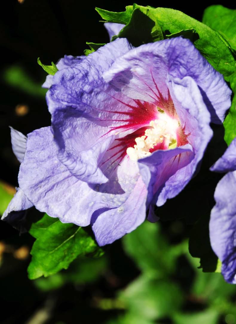 The leaves are a pointed diamond-shape with three or more indentations. But the new leaves do not appear until late May or June, sometimes well into June, so it is not too surprising that this Syrian species of hibiscus often runs out of good summer weather before flowering can get much underway.