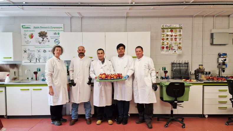 The Irish Apple research team at the lab in Teagasc Oak Park, from left to right; Rachel Keirse, Jean do Prado, Alberto Ramos Luz, Ahmad Hassan and Philip McLoughlin.