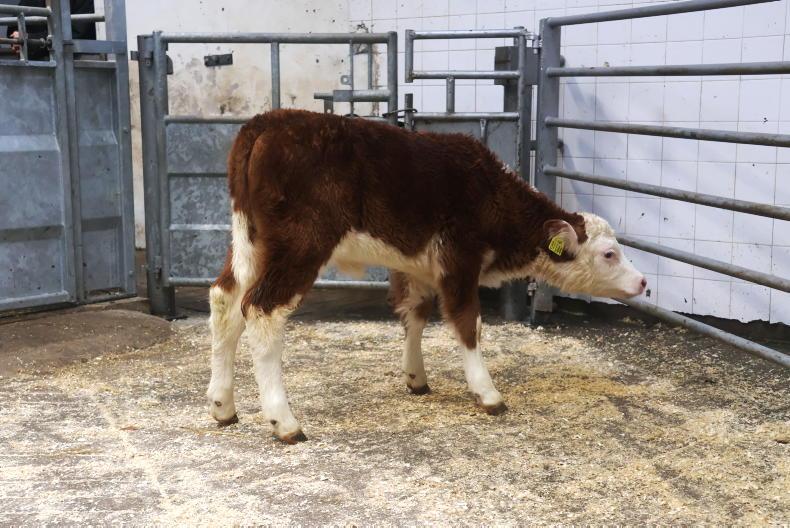 This three-week-old Hereford-cross heifer weighed 54kg and sold for €90.