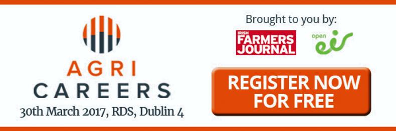 Agri Careers 2017 will take place on Thursday 30 March 2017 in the RDS Main Hall, Ballsbridge, Dublin 4, brought to you by Irish Farmers Journal and open eir. Click here for more information.