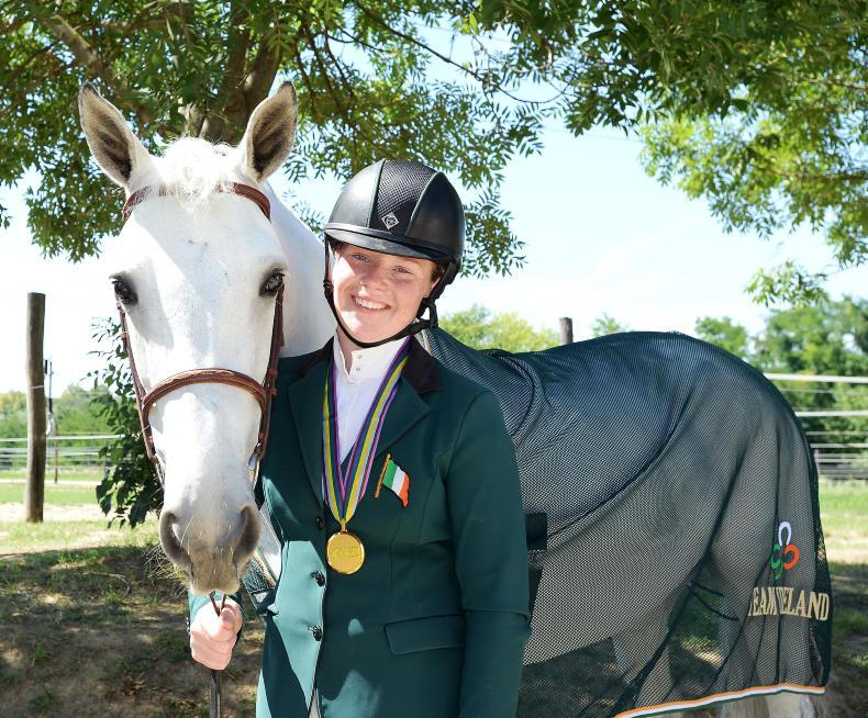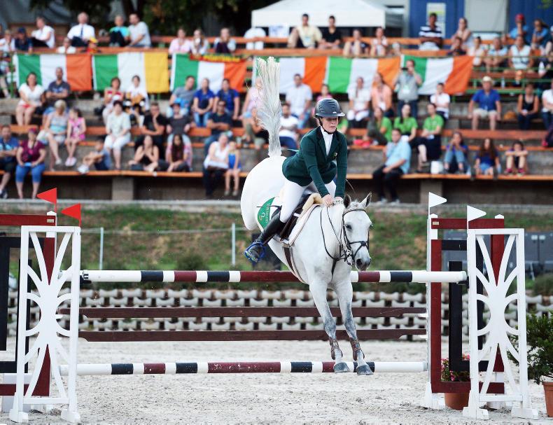 She and her rider helped the Irish team finish on just four faults to claim the gold medal for Garry Marshall’s team of Wexford’s Harry Allen (Cassandra van het Roelhof), Cork’s Abbie Sweetnam (Dynamite Spartacus (ISH), Mayo’s Ciaran Nallon (Rextor d’Or), and Kate Derwin (Cul Ban Mistress (CP).