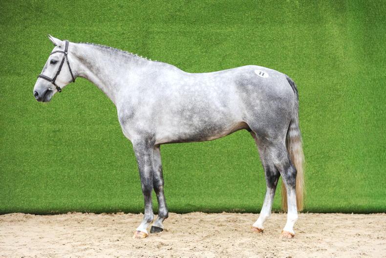 Monbeg Sport Horses’ Monbeg Monaco, four-year-old gelding by Malcomme P (dam by Emir R) €90,000 (Goresbridge Go For Gold). Imported from Holland, the handsome grey landed top honours at €90,000, when secured by British event horse owner Ian Barrett.