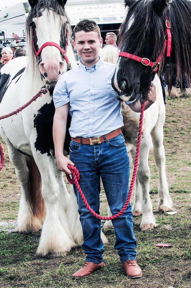 Ian McDonagh pictured at the Ballinasloe Horse Fair with some of the Ballydangan Irish cob mares and foals. Ian is working on a 2017 BT Young Scientist and Technology Exhibition project on the cures and folklores of the Irish travelling community