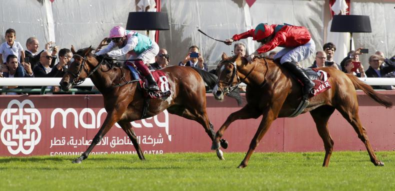 There was an Irish win earlier on the card when Albigna claimed the Group 1 Prix Marcel Boussac for Shane Foley and Jessica Harrington. She gave her trainer a second Group 1 in eight days, following Millisle’s win in the Cheveley Park. Harrington could land a remarkable juvenile fillies Group 1 treble if Cayenne Pepper takes Friday’s Fillies Mile at Newmarket.