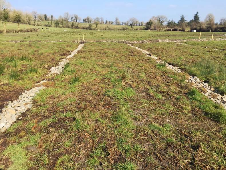 The main cost so far involved in reclaiming this land was drainage. To begin with, all existing drains were cleaned out with a digger. Even open drains in neighbouring land were cleaned to ensure the water had a place to go and flow rate would increase.