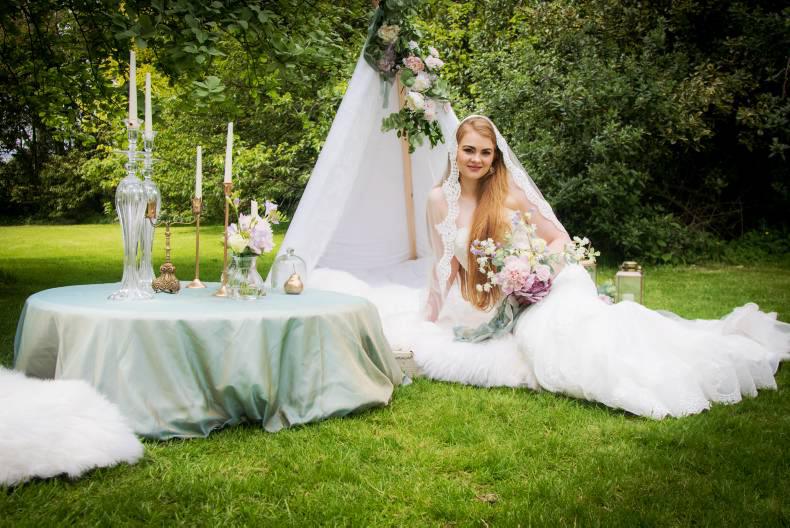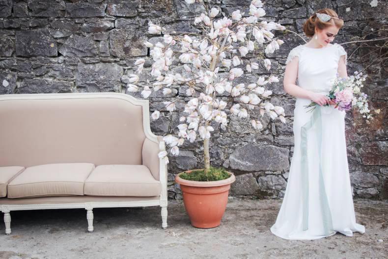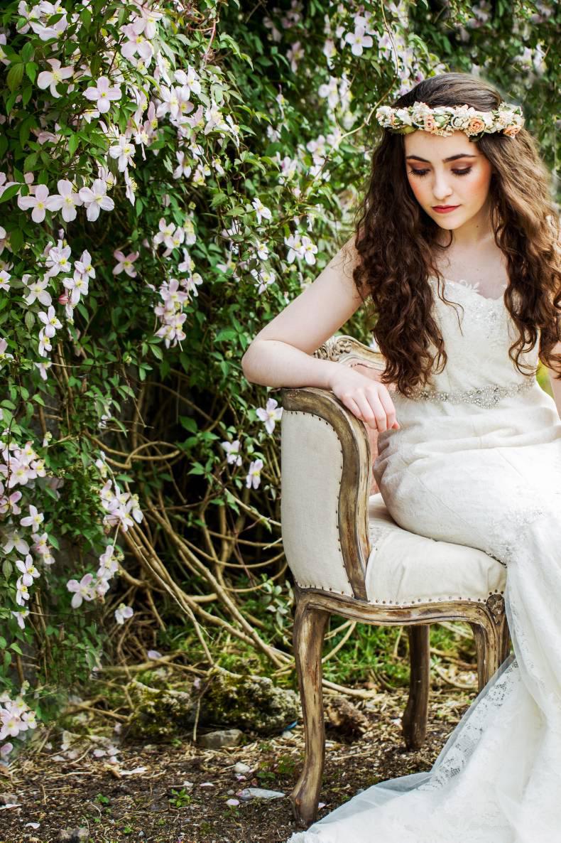 Set in the beautiful location of Ballyheshall Stud, Co Offaly, the shoot shows many inspiring ideas from dresses, to makeup and headpieces, to interior décor. Sticking closely to the rustic theme that is very popular with couples at the moment, the shoot was brought together by a group of collaborators in the midlands and is sure to give couples some food for thought.