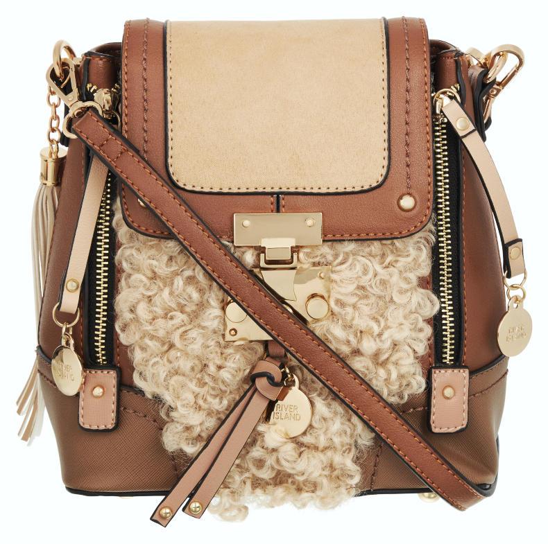 15 Brown faux-fur, lock-front backpack, River Island (€50)