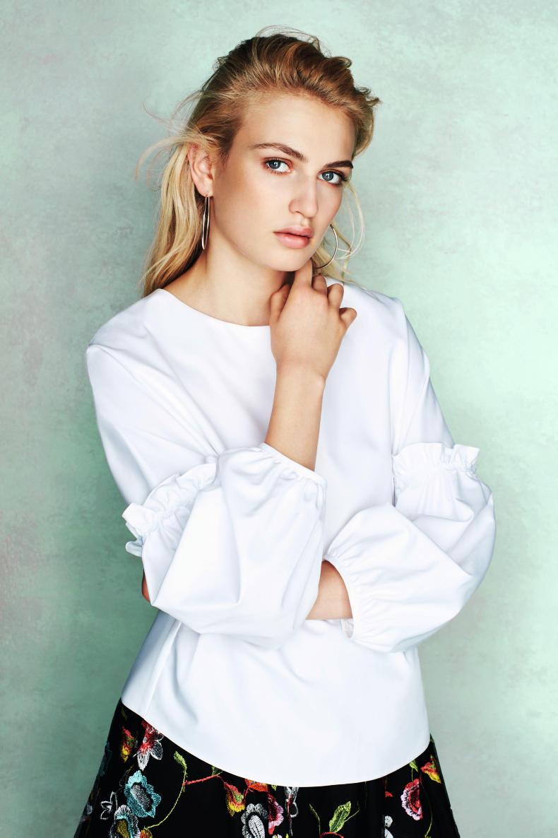 Fresh white blouses with feminine touches are a more classic and timeless pairing for florals.