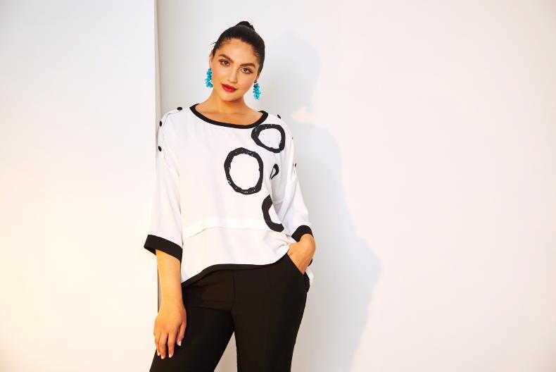 There was a time when we had to forgo comfort for the sake of style. Thankfully, that’s no longer the case. Irish brand Ora Clothing offers a collection that is both comfortable and stylish, with a size range from 12 - 26. Their collections are designed for curves and, as the basic block pattern is a size 16, this ensures that the cuts are really flattering. Both the top and trousers can be styled separately in many ways, giving you that much valued versatility. Circle top €137, trousers €120 by Ora Clothing ( www.mcelhinneys.com www.winsomelady.co.uk/).