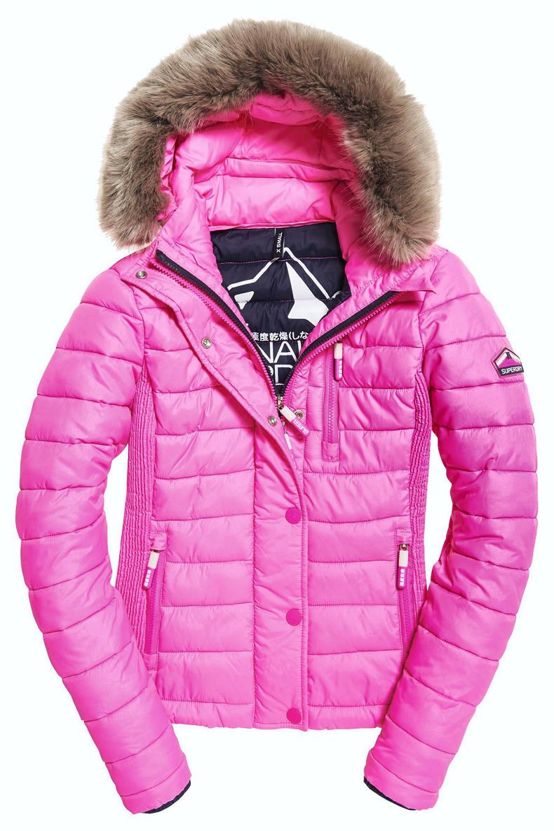 Pink fur-hooded jacket, Superdry (€114.99).