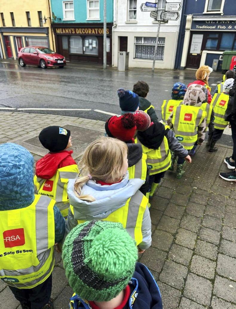 Children from Bruff Pre School in Co Limerick on their way to post their cards to nursing home residents as part of the Carepack initiative.