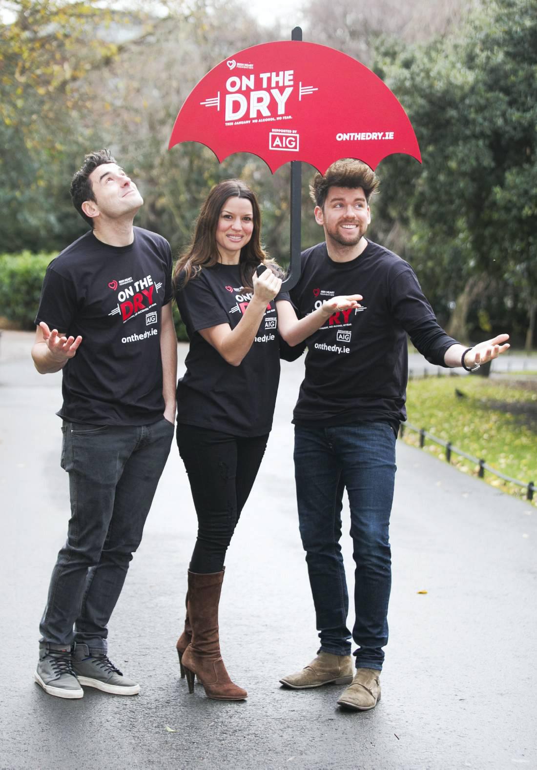 NO REPRO FEE. 15/12/2014. Caroline Morahan, Dublin GAA footballer Bernard Brogan and TV presenter Eoghan McDermott launch On The Dry a new fundraising campaign established by the Irish Heart Foundation and supported by AIG and 98FM. On The Dry is the first year of a new and exciting fundraising initiative that asks people to challenge themselves by giving up alcohol for January, in a bid to improve their health and wellbeing and find new ways to engage with family and friends, all while raising