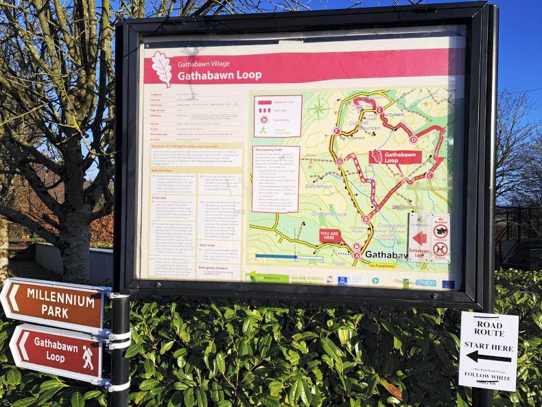 There will be two route options on the day - the long route will take place on The Gathabawn Loop. This is approximately 11-12km and will take you along quiet country roads, forestry and farmland, crossing over the border into Co Laois at points. It is recommended to allow three to four hours to complete this route. It is worth noting, as there are other looped walks in this area that on 26 December, walkers should follow the signs for the ‘Gathabawn Loop.’