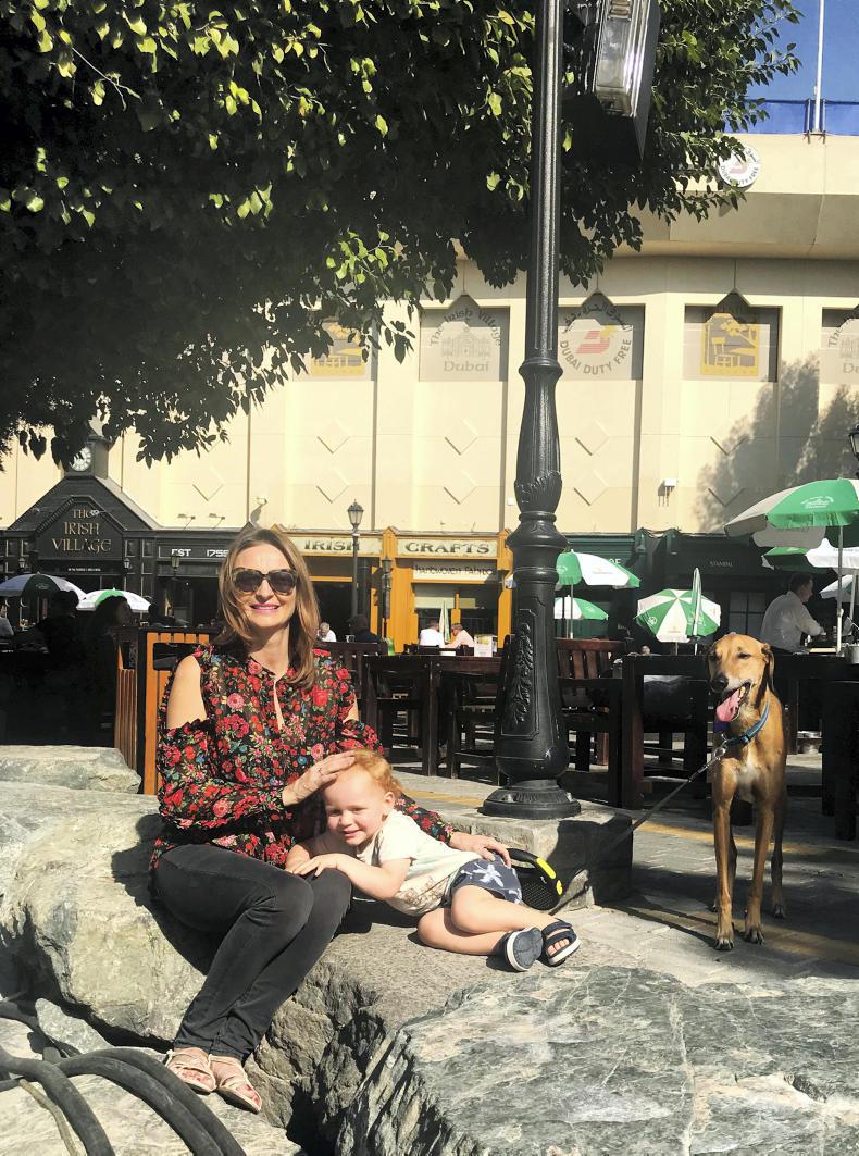Yvonne Kerr with her son Gabe at the Irish village in Dubai.