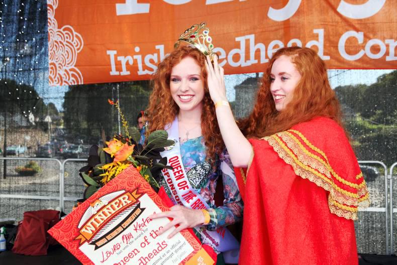 The new Queen of the Redheads, Laura-May Keohane from Kinsale, pictured receiving her crown from outgoing queen, Sarah Mullens, at the Irish Redhead Convention in Crosshaven. Pic: Diane Cusack.