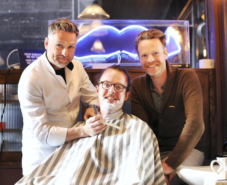 Pictured at the launch of the Movember 2018 campaign are Sam Donnelly, Sam’s Barbers, John Connell, farmer, author and Movember ambassador, and Neil Rooney, Movember country director.