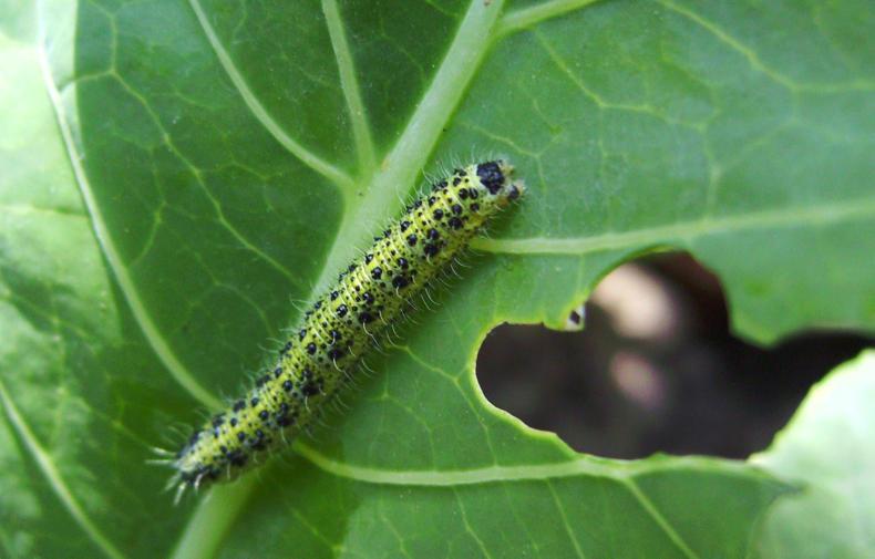 The primary enemy is the cabbage white butterfly, a white butterfly which dances prettily around the veg patch from spring until autumn. It lays eggs on the leaves of the plants and those eggs turn into larvae (caterpillars) that feast on the leaves. An infestation of caterpillars can completely strip a brassica plant of leaves if given the chance.