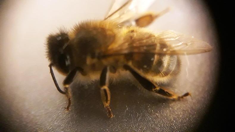 From a beekeeping perspective, the hind legs of the honeybee are always in focus as they contain the pollen baskets. These baskets, known as “corbiculae”, are specifically designed to collect, pack and retain pollen grains for conveyance back to the hive, giving the beekeeper signals as to what is happening within the hive.