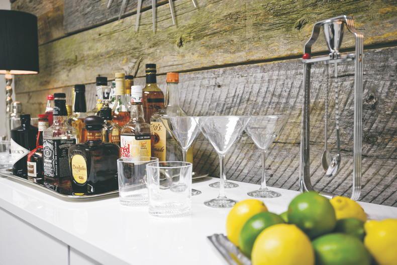 If you are stuck for space, add a drinks area above the worktop: change a cupboard to an open bar where you can display your drinks and hang your glasses. Make a feature out of it in your kitchen.