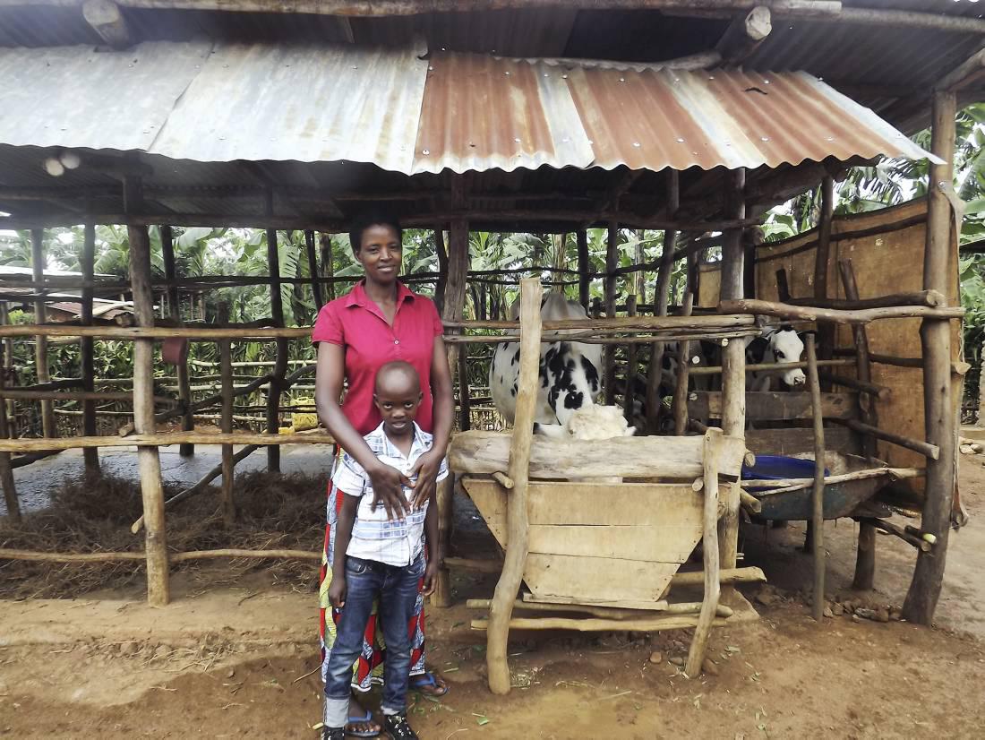 In 2007, Vestine received a heifer from Bóthar. She now has two cows and is able to sell milk, but also gives it away to neighbouring families in need.
