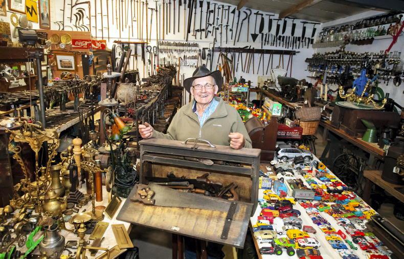 Life changed a lot for me in 1994 at the age of 58, when I lost the sight in one eye. I was mending a tyre and a bar I threw hit the tyre and flew back and hit me. The road was out for me then. We had seven children at the time. I said I’d have to do something or I’d go cracked, so I took the Farm Retirement Scheme and set the land, and started collecting stuff in earnest then, going to auctions all over the country with a friend of mine, Jim Rochford.
