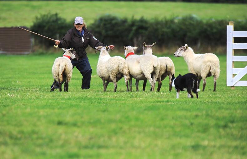 Krisztina Rozanich with her dog Grace competing in the 2021 Irish National Sheep Dog Trials at Killalee, Fossa, Killarney, Co Kerry. \ Valerie O'Sullivan
