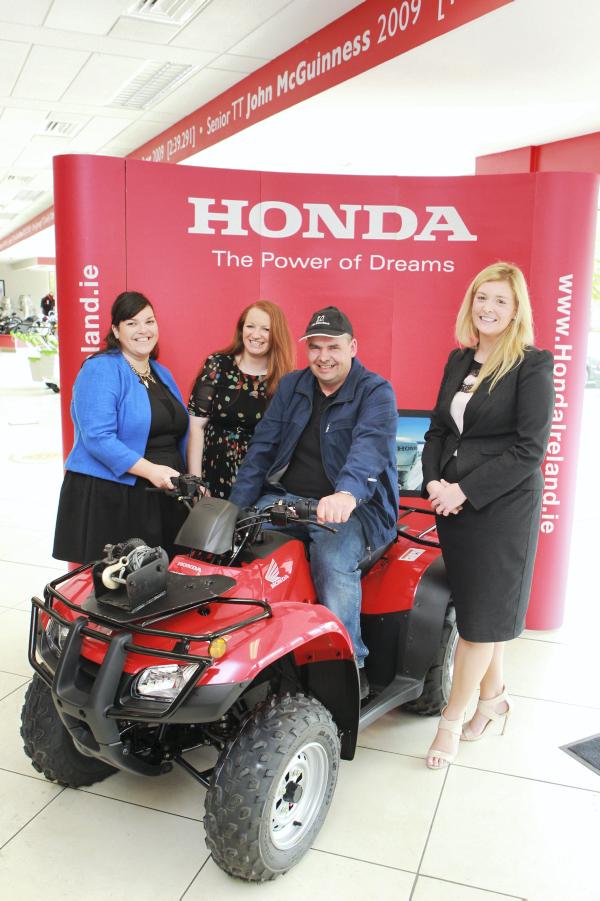 Clodagh Carey (Marketing Department, Irish Farmers Journal), Ciara O’ Kelly (Consumer Editor, Irish Country Living), Robert Meagher from Windgap, Co Kilkenny with his prize of a Honda TRX 250 and Eva O’Toole (Marketing Manager REDCO)
