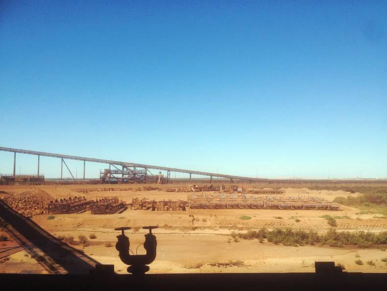 Most of those who work in Port Hedland itself work in iron ore processing facilities, around the port, or in support services for the industry. The mines themselves are found hundreds of kilometres inland (which is “just over the road” by Australian standards). Trains come inland from mines in places such as Newman, dump their ore and go back for more.