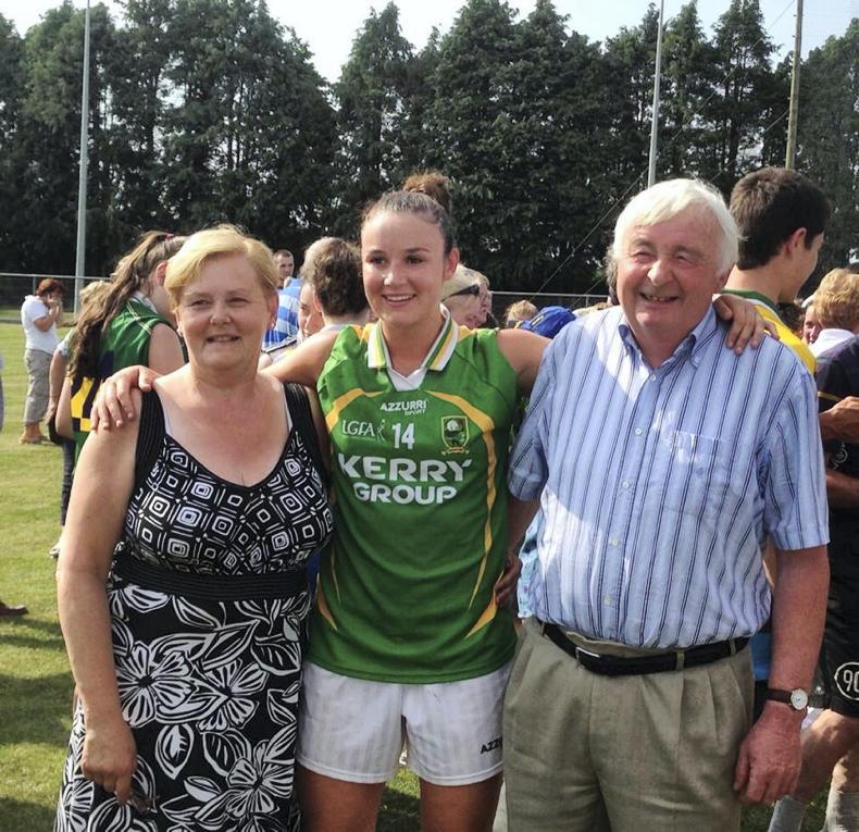 Louise Galvin with her parents Aidan and Kay at the 2013 Munster football final, where Kerry beat Cork and Louise was named player of the match.