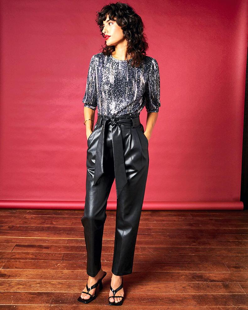 Those elements of difference may be subtle or statement, but always interesting. As edgy style is striking and strong, the key elements of that wardrobe will be striking too. Almost any leather or faux leather piece is a go-to staple — the perfect strong texture for a strong look. Very often, leather trousers, leggings or a jacket provides the starting point.