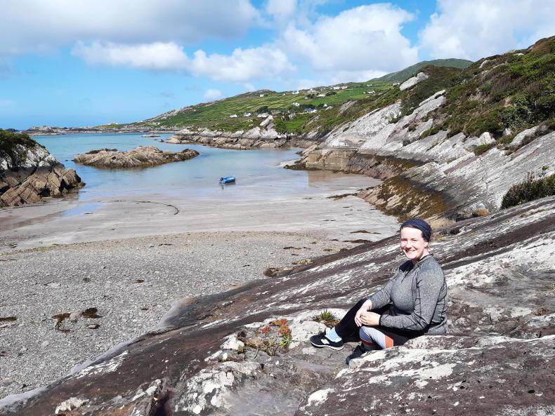Maria Moynihan taking a breather on the Derrynane Mass Path.