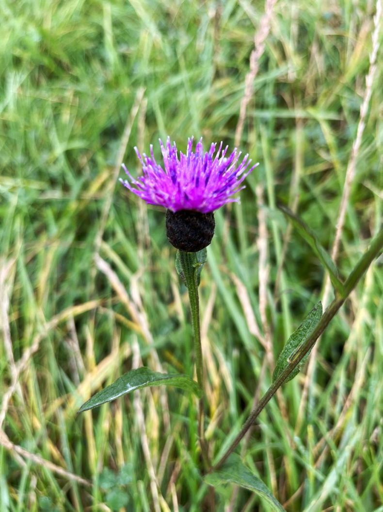 Look out for common knapweed – one of our later flowering plants. Many of the deep purple compact flowerheads have turned into the black seedheads which remain on their hard branched stems and last throughout winter, while occasional flowerheads stand out at this time of year. Because of the black seedheads it is also known as black knapweed or blackheads.