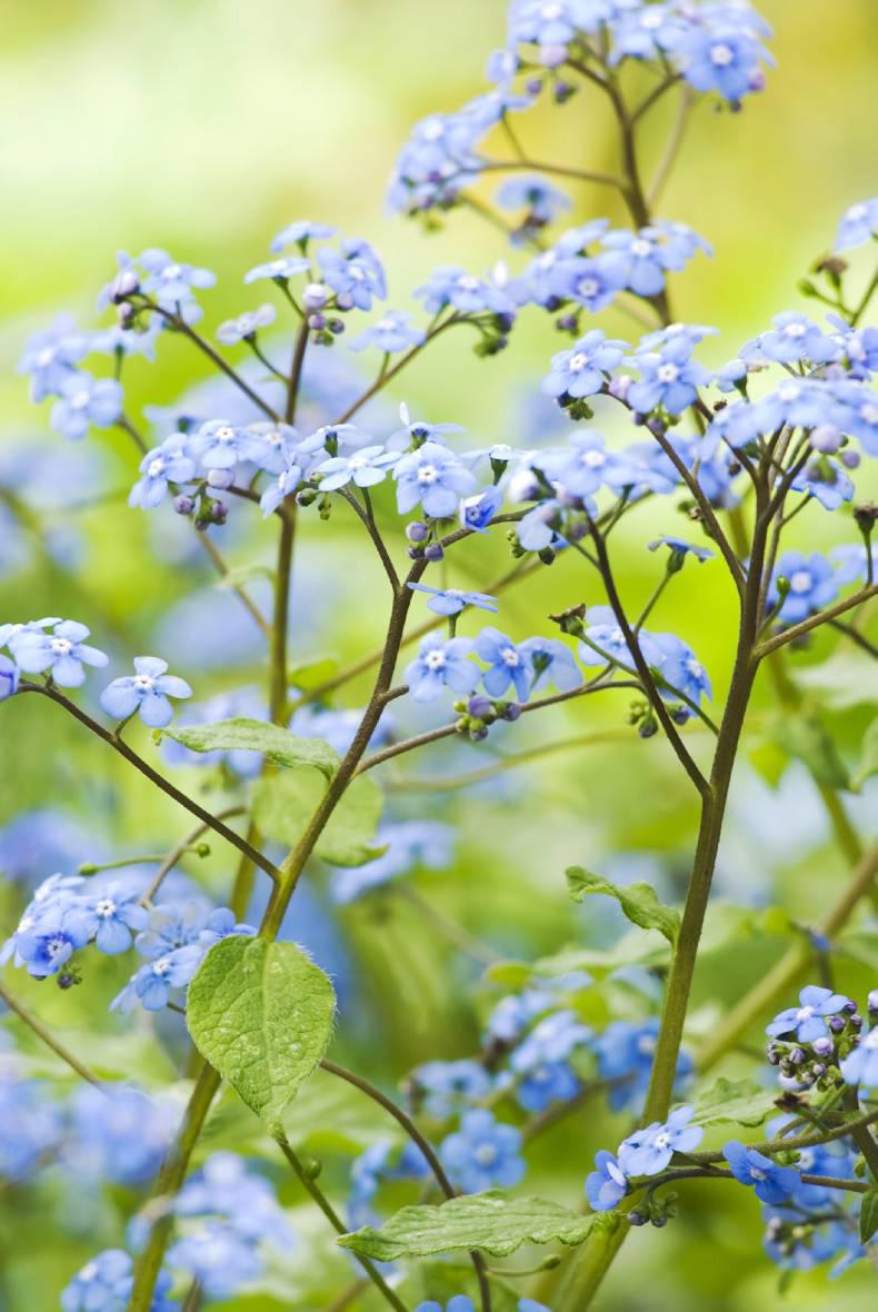 Forget-me-not is still very popular and there is now more uptake on a few perennial flowers related to forget-me-not, and having the same charming blue flowers. In fact, it is possible to have a succession of forget-me-not flowers from February to July. Three species may be used to stretch the season: omphalodes, brunnera and cynoglossum. All three are related closely to forget-me-not and, like forget-me-not, are members of the borage family, all of which, typically, have strong blue flowers – though not all have the small flat, light blue flowers of forget-me-not.