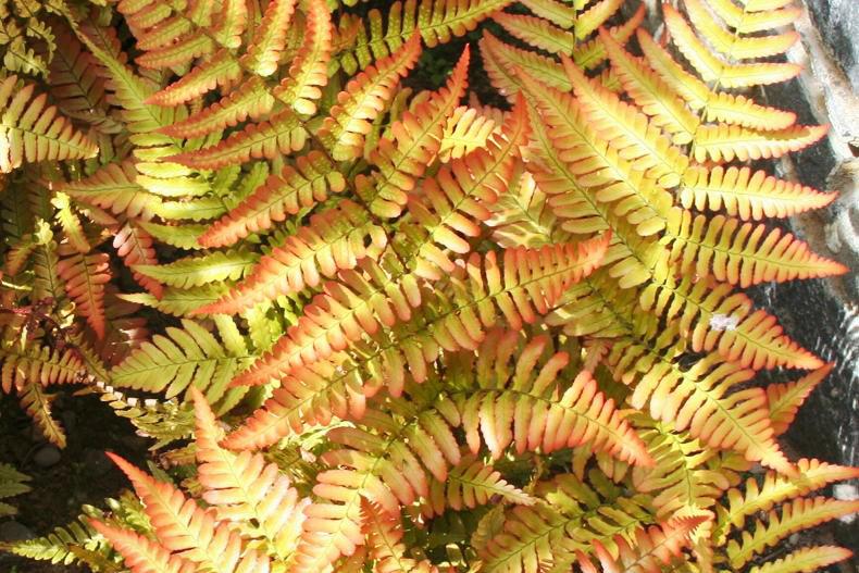 Several ferns will also make useful additions to this border. Amongst the toughest are hart’s tongue fern, Asplenium scolopendrium, and forms of the soft shield fern, Polystichum. Many species of Dryopteris are tolerant of dry shade, including Dryopteris erythrosora ‘Brilliance’ which provides a striking pop of colour with its unique, reddish-copper emerging fronds that mature to bright, yellow-green.