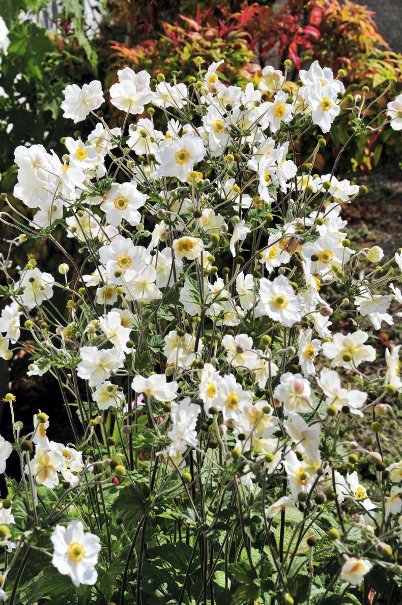 The Japanese anemone fits in fine with shrubs, being vigorous and tolerating some light shade