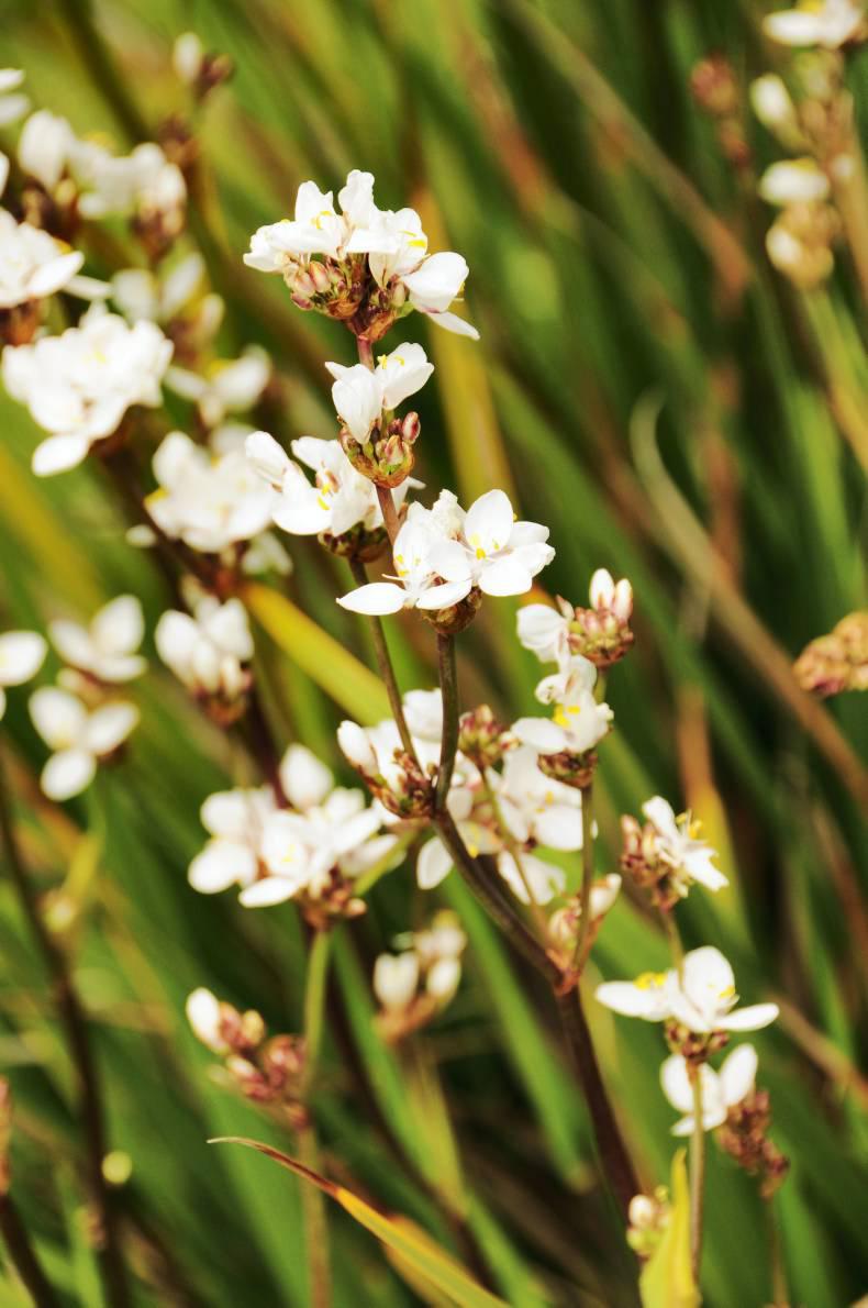 Now in full flower, libertia is a very elegant and beautiful plant. It produces tall flower stems with clusters of flowers. The flowers of the most commonly grown kinds are pure white. They are carried in groups, with the flowers of each group opening in sequence and keeping the flowering going over a period of several weeks in early to mid-summer.