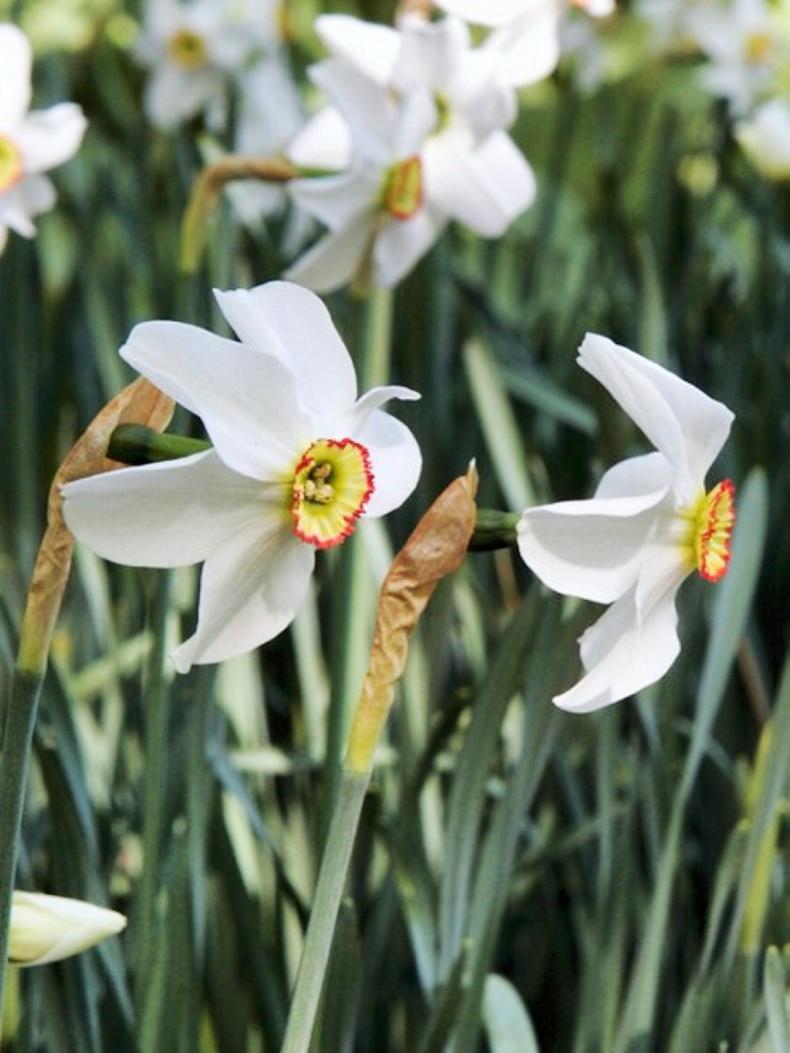 You can prolong the season with ‘Pheasant’s Eye’ a beautiful white daffodil with a yellow centre and orange rim that flowers into May. The ‘Bridal Wreath’ is another late-flowering highly scented daffodil.