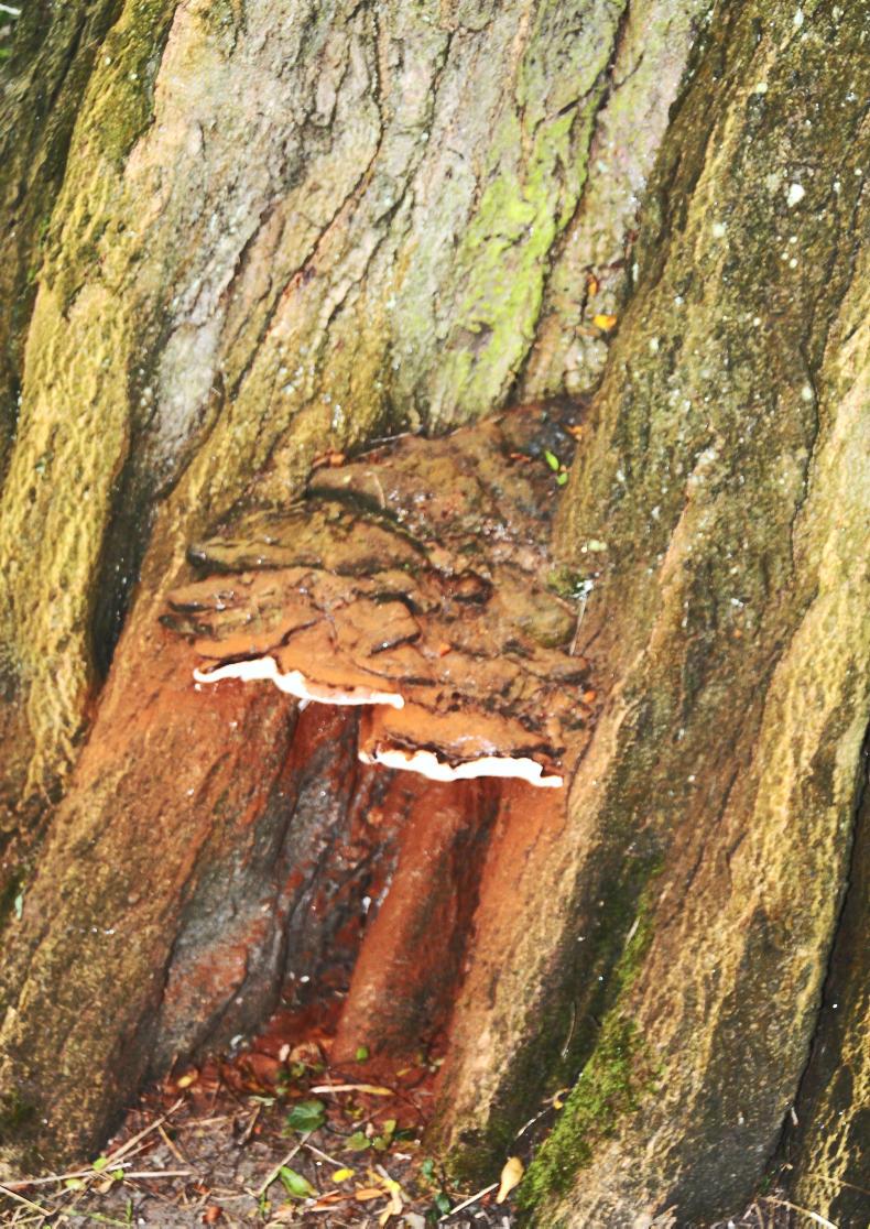 Each layer produces red-brown spores by the million and these are carried on the wind to new infection sites, usually on old trees. Once growing, the fungus feeds on the heart-wood of the tree, destroying its strength, making it useless as timber, and weakening the tree structurally. Bracket fungus is very common on beech, and old brackets can be a warning sign of a tree that is compromised.