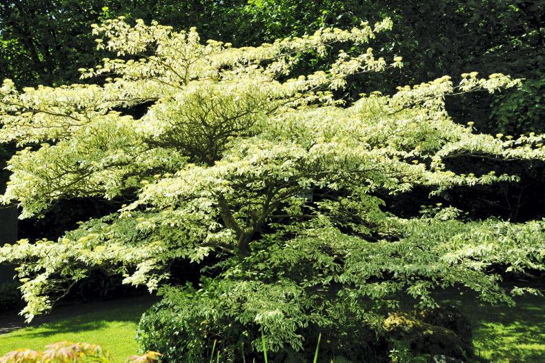 Some trees and shrubs make a tiered “wedding-cake” structure, such as the wedding cake dogwood or viburnum. But some plants can be slow to make height or new tiers and tend to grow wider. In the natural way, an occasional upright shoot is made and this grows to form a new layer of wedding cake or of weeping branches. If a tree or shrub is tardy about making height, it can be given encouragement by selecting a young, strong but pliable branch at the top and tying it upright to a strong cane, which is in turn tied to the plant itself. This gives the upright branch more nutrients and it usually, though not always, takes off nicely. Leave the cane in position for a year or so.