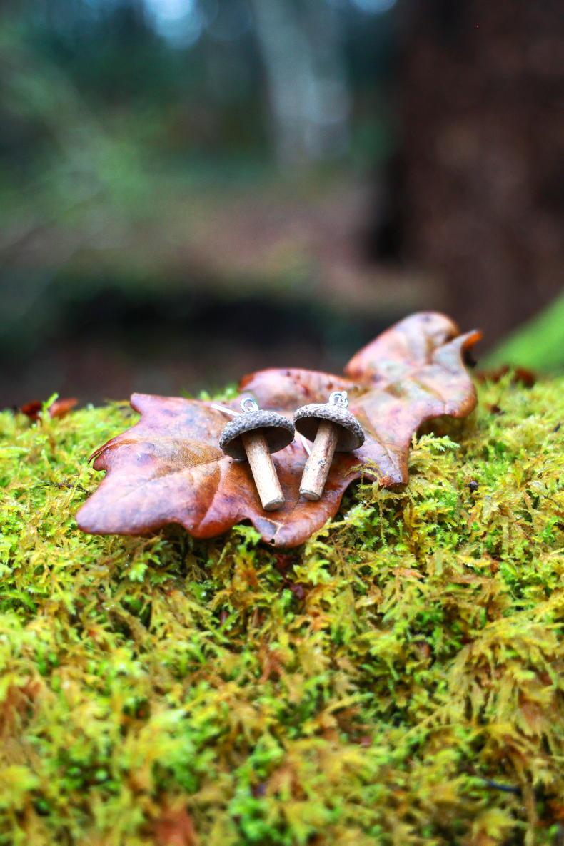 Despite lying on the forest floor, there is something majestic about the massive branches stretched out across the wood amid an autumnal tapestry of colour. The moss and leaves provide a fitting backdrop to photograph Eddie and his dog with pieces from his handmade jewellery collection, which use hazel, bog oak, acorns and feathers, so that you can carry a piece of nature with you everyday, no matter where you are.