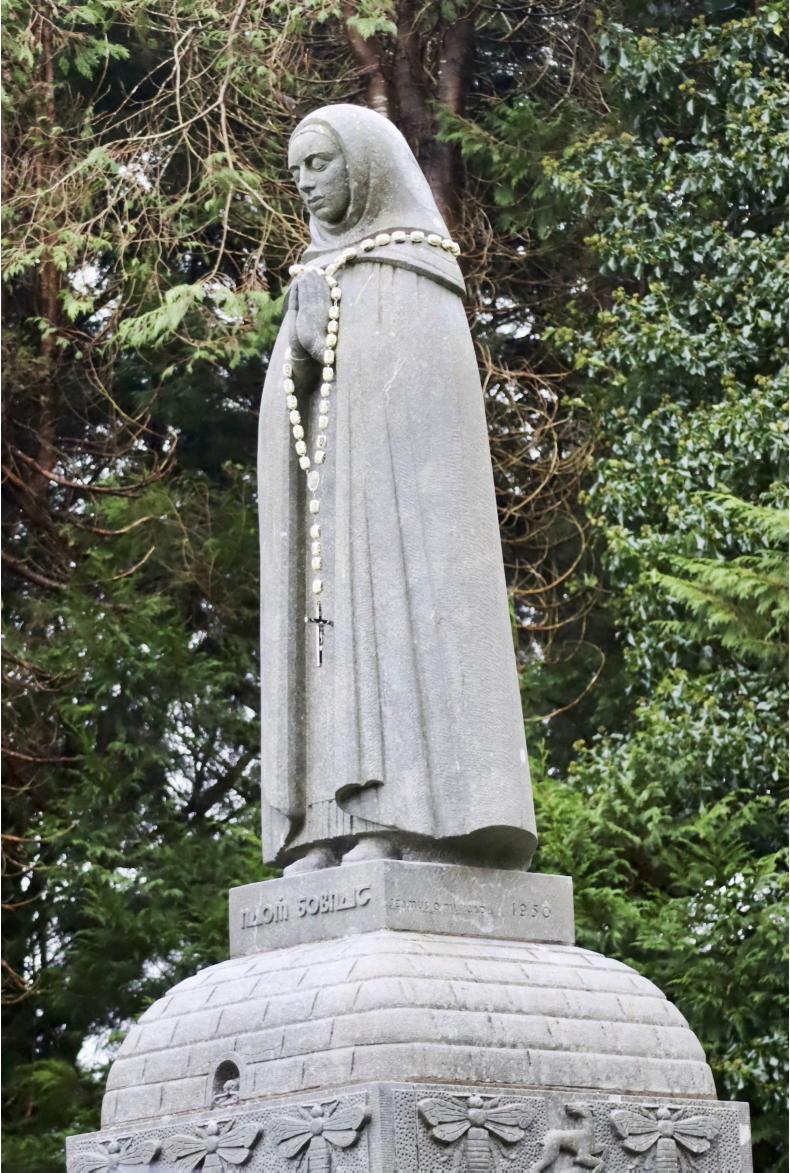 Seamus Murphy's 1950 statue of St Gobnait, standing on her beehive in Baile Bhúirne, Co Cork